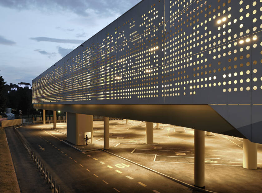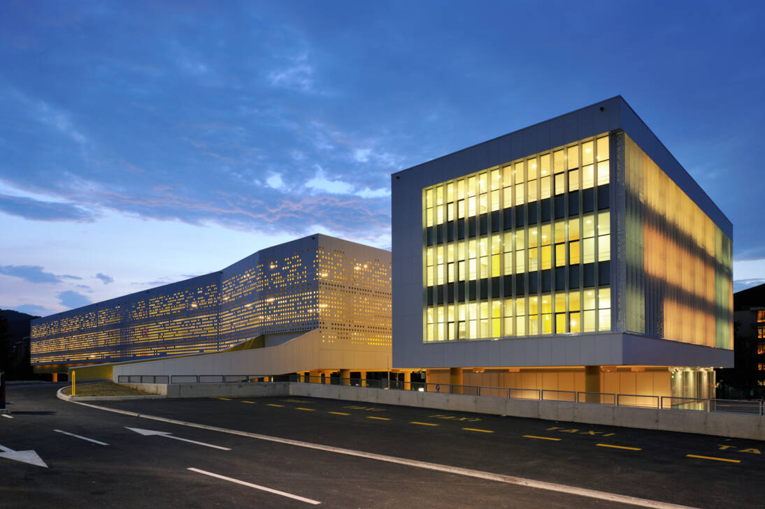 Ce bâtiment de Velenje comprend une vaste gare routière au rez-de-chaussée, ainsi que des bureaux et un parking aux étages. La superstructure se distingue par ses nombreux panneaux Swisspearl blancs qui permettent d’unifier les différentes parties. Le motif irrégulier des perforations crée un contraste jour/nuit original.