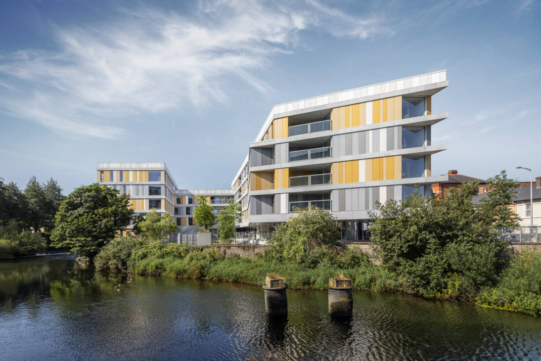 Placée sur un site important entre la Western Road et la rivière Lee à Cork, la nouvelle résidence pour étudiants de DTA Architects comprend 190 chambres d’étudiants avec salle de bain attenante, regroupées dans 28 appartements collectifs, ainsi qu’une salle de réception et des espaces communs au rez-de-chaussée.